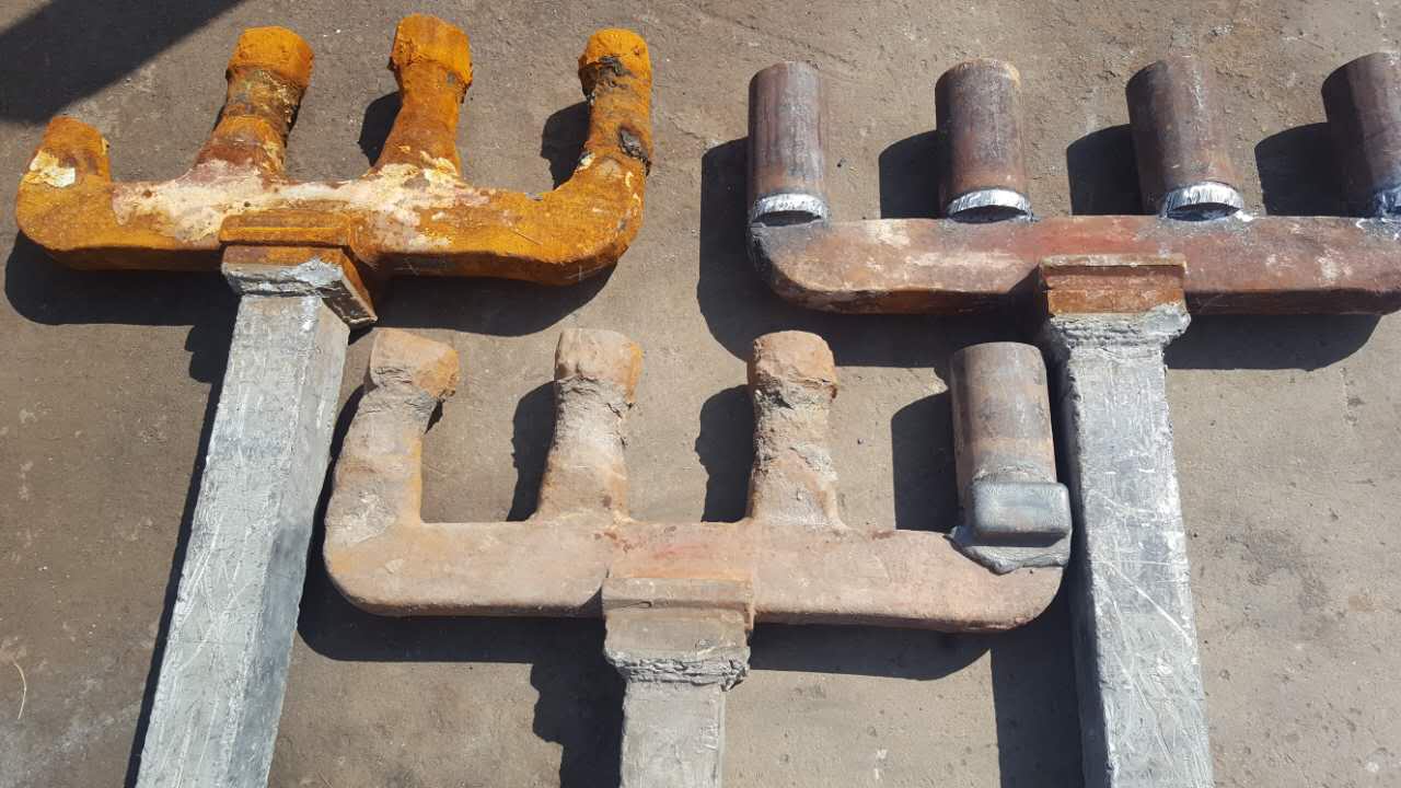 结构型节能大菠萝福利网站横梁、钢爪腿圆钢及电渣焊口材质均为Q235,经电渣焊接,三者充分熔合为一个整体,整个钢爪力学性能导电性能完全一致,钢爪腿与腿之间、批与批之间无质量差异。经电解槽实际测量,同比于铸钢爪,电压降降低15一20mv。